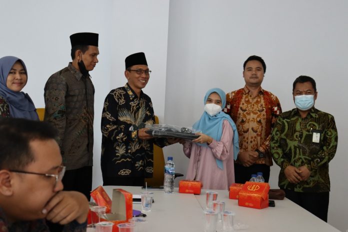 Rektor IAIN Syekh Nurjati Cirebon, H. Sumanta, M.Ag menyerahkan 27 Laptop kepada para dosen Pembelajaran Jarak Jauh (PJJ) Pendidikan Agama Islam (PAI) IAIN Syekh Nurjati yang telah menjalankan tugas-tugasnya dalam proses pembelajaran di semester II. Acara penyerahan laptop tersebut berlangsung secara luring terbatas dengan penerapan protokol Covid-19 di auditorium PJJ PAI kampus IAIN Syekh Nurjati Cirebon, Rabu (11/5/2022).