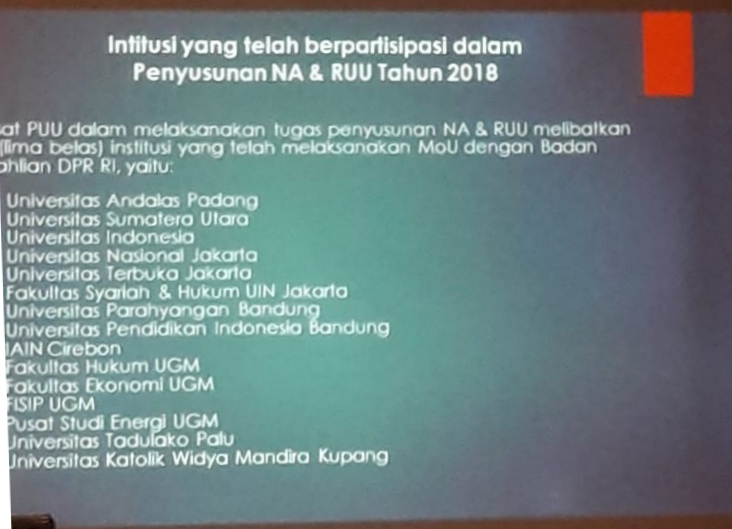 Penelitian dan Pengabdian adalah bagian dari ruh Perguruan tinggi yang dapat disinergiskan dengan lembaga keahlian DPR. Karena sesungguhnya naskah akademik bersifat dinamis dan selalu menyesuaikan dengan ruang publik. Dalam hal ini dosen dapat dilibatkan untuk bidang penelitian tersebut.