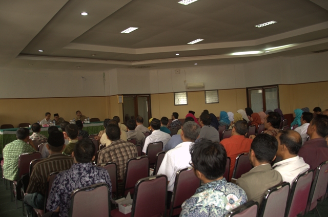 Dr. Saefuddin Zuhri, M.Ag mendampingi Rektor dan Kabiro IAIN yang baru dalam acara ramah tamah dengan Dosen dan Karyawan.