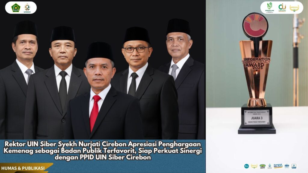 UIN Siber Cirebon (Jakarta, Kemenag) – Rektor Universitas Islam Negeri (UIN) Siber Syekh Nurjati Cirebon, Prof. Dr. H. Aan Jaelani, M.Ag., menyampaikan apresiasi dan dukungan penuh atas capaian Kementerian Agama Republik Indonesia (Kemenag RI) yang meraih penghargaan Badan Publik Terfavorit dari Komisi Informasi Pusat (KIP) dalam ajang Information Transparency Award 2025.