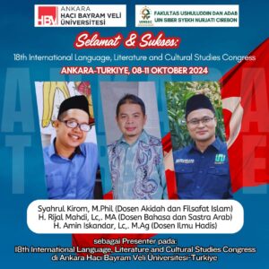 UIN Siber Cirebon — Rektor Universitas Islam Negeri (UIN) Siber Syekh Nurjati Cirebon, yang juga disebut dengan Cyber Islamic University (CIU), Prof. Dr. H. Aan Jaelani, M.Ag, secara resmi melepas rombongan dosen dari Fakultas Ushuluddin dan Adab untuk berpartisipasi dalam Kongres Bahasa, Sastra, dan Budaya Internasional ke-18 (DEKAK) yang akan berlangsung di Ankara, Turkiye. Kongres prestisius ini diselenggarakan oleh Universitas Ankara Hacı Bayram Veli dan dijadwalkan berlangsung dari 8 hingga 11 Oktober 2024. Jum’at, (04/10/2024).