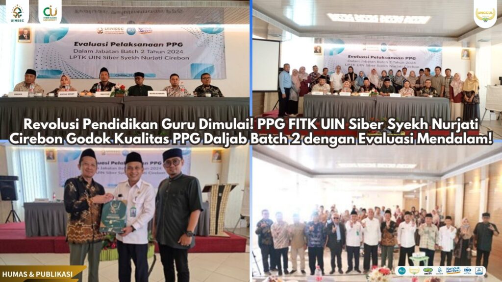UIN Siber Cirebon — Fakultas Ilmu Tarbiyah dan Keguruan (FITK) UIN Siber Syekh Nurjati Cirebon (UINSSC) sukses menggelar Evaluasi Pelaksanaan Pendidikan Profesi Guru (PPG) Dalam Jabatan (Daljab) Batch 2 Tahun 2024 pada Selasa (29/7/2025) di Hotel Grand Tryas, Jl. Tentara Pelajar, Kesambi, Kota Cirebon. Kegiatan ini berlangsung sejak pukul 08.00 WIB hingga selesai dengan dihadiri oleh berbagai pemangku kepentingan.