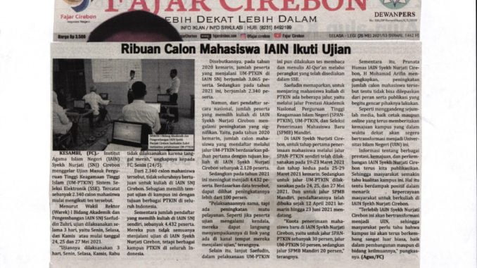 Ribuan Calon Mahasiswa IAIN Ikuti Ujian (Fajar Cirebon/25 Mei 2021) 13 Oktober 2021 arifin Kliping Digital 0 Ribuan Calon Mahasiswa IAIN Ikuti Ujian