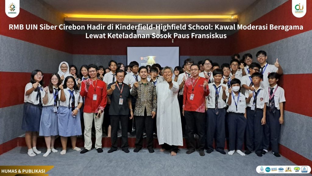 UIN Siber Cirebon – Komitmen untuk memperkuat pengarusutamaan moderasi beragama di kalangan generasi muda kembali ditegaskan oleh Rumah Moderasi Beragama (RMB) UIN Siber Syekh Nurjati Cirebon, yang juga dikenal dengan Cyber Islamic University (CIU), melalui partisipasinya dalam acara bertema kemanusiaan dan lintas agama di Kinderfield-Highfield School Cirebon, Rabu, 30 April 2025. Kegiatan ini digelar sebagai bentuk penghormatan dan refleksi terhadap nilai-nilai yang diwariskan oleh Paus Fransiskus, pemimpin Gereja Katolik yang dikenal luas karena keteladanannya dalam mengusung toleransi, ekologi, dan kesederhanaan.