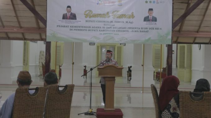 Peserta 4th ICON UCE 2022 berkunjung ke Pendopo Kantor Bupati Cirebon setelah mengikuti pembukaan dimana kegiatan tersebut sudah diagendakan oleh panitia. Rombongan yang berasal dari berbagai Perguruan Tinggi Keagamaan Islam (PTKI) di seluruh Indonesia diterima langsung oleh Bupati, Beliau sangat senang dengan kedatangan rombongan dari Departemen Agama ini. Mengingat Beliau pun berasal dari keluarga besar Departemen Agama. “Alhamdulillah malam ini pendopo dihadiri oleh para tokoh dari departemen agama. Saya merasa senang dan bangga, karena saya pun berasal dari keluarga besar departemen agama”.