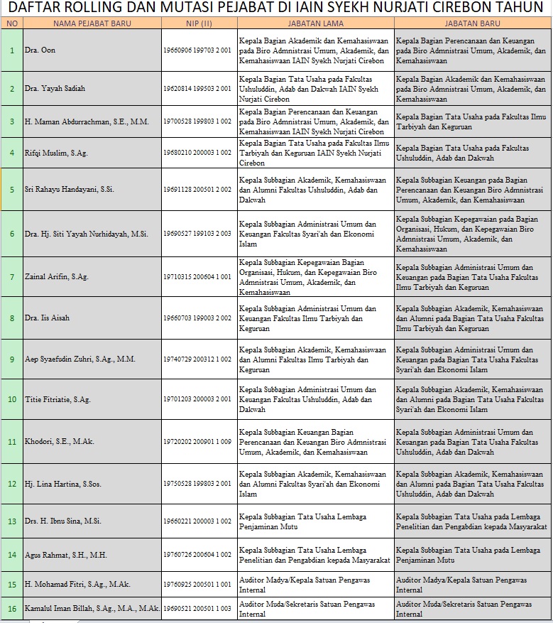 ROTASI JABATAN PEGAWAI DI LINGKUNGAN IAIN SYEKH NURJATI CIREBON TAHUN 2019 12 Februari 2019 arifin Informasi, Kegiatan 0 Humas dan Publikasi