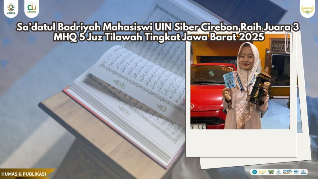 UIN Siber Cirebon (Soreang, Bandung) – Prestasi membanggakan kembali ditorehkan oleh Sa’adatul Badriyah, mahasiswi semester 2 Jurusan Pendidikan Agama Islam (PAI), Fakultas Ilmu Tarbiyah dan Keguruan, Universitas Islam Negeri Siber Syekh Nurjati Cirebon (UIN SSC), yang juga dikenal sebagai Cyber Islamic University (CIU). Sa’adatul berhasil meraih Juara 3 Musabaqah Hifzhil Qur’an (MHQ) 5 Juz Tilawah Tingkat Provinsi Jawa Barat Tahun 2025, yang diselenggarakan oleh Lembaga Pengembangan Tilawatil Qur’an (LPTQ) Provinsi Jawa Barat. (22/06).