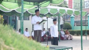 Rektor UIN Siber Syekh Nurjati Cirebon, Prof. Dr. H. Aan Jaelani, M.Ag., yang bertindak sebagai inspektur upacara. Dalam pidatonya, Prof. Aan Jaelani membacakan sambutan Menteri Agama RI, yang menekankan pentingnya mengenang jasa para santri yang telah berjuang dalam mempertahankan kemerdekaan Indonesia. “Hari Santri yang kita peringati setiap tanggal 22 Oktober adalah momentum untuk mengenang dan meneladani para santri yang berperan penting dalam memperjuangkan kemerdekaan Indonesia,” ungkap Prof. Aan.
