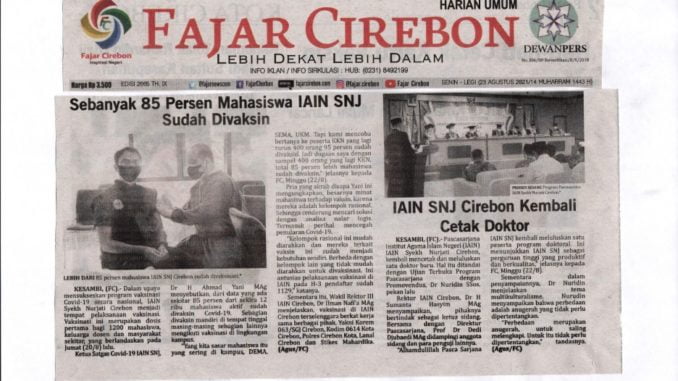 Sebanyak 85 Persen Mahasiswa IAIN SNJ Sudah Divaksin (Fajar Cirebon/23 Agustus 2021) 13 Oktober 2021 arifin Kliping Digital 0 Sebanyak 85 Persen Mahasiswa IAIN SNJ Sudah Divaksin