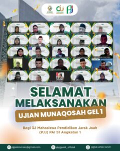 “Sebagai sidang munaqosah perdana di tengah tahun 2025, ini adalah tonggak sejarah bagi Program Studi PJJ PAI. Saya tidak bisa menyembunyikan rasa haru dan bangga melihat 32 mahasiswa pertama yang akan menjadi lulusan program ini,” ungkapnya.