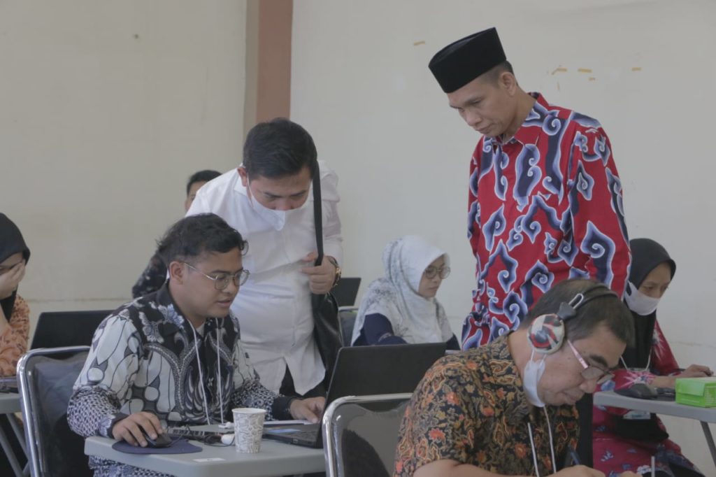 Dr. H. Saefudin Zuhri, M.Ag (warek I selaku tim monev) memastikan jalannya kegaitan Tes Penerimaan Calon Mahasiswa Baru PJJ PAI Semester Ganjil Tahun Akademik 2022/2023.