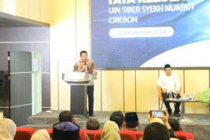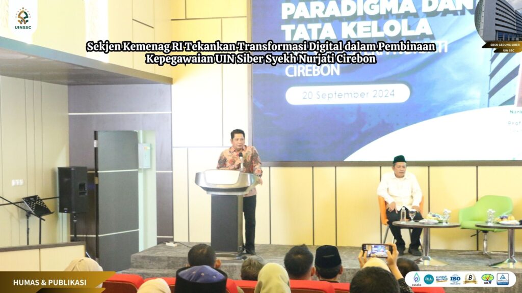 UIN Siber Cirebon – Universitas Islam Negeri (UIN) Siber Syekh Nurjati Cirebon menggelar kegiatan Pembinaan Kepegawaian dengan tema “Perubahan Paradigma dan Tata Kerja dalam Pengelolaan UIN Siber Syekh Nurjati Cirebon” pada Jumat, 20 September 2024. Acara ini menghadirkan narasumber utama, Prof. Dr. Muhammad Ali Ramdhani, S.TP, M.T., yang saat ini menjabat sebagai Sekretaris Jenderal Kementerian Agama RI. Kegiatan ini berlangsung di Auditorium Lantai 8 Gedung SBSN Siber dan dihadiri oleh Rektor, para Wakil Rektor, Kepala Biro AUAK, para Dekan, Ketua dan Sekretaris Jurusan, para Kepala Lembaga, serta pejabat struktural lainnya.