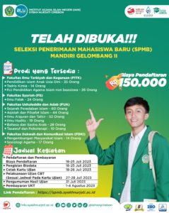 IAIN SNJ Cirebon masih membuka peluang pendaftaran Penerimaan Mahasiswa Baru (SPMB) Mandiri Gelombang 2