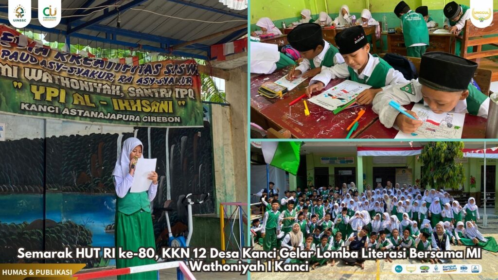 UIN Siber Cirebon (Kanci) – Suasana berbeda tampak di halaman MI Wathoniyah I Kanci, Desa Kanci, Kecamatan Astanajapura, Kabupaten Cirebon. Dalam rangka memperingati HUT RI ke-80, mahasiswa KKN 12 Desa Kanci UIN Siber Syekh Nurjati Cirebon bekerja sama dengan MI Wathoniyah I Kanci menggelar Lomba Literasi yang menghadirkan keceriaan sekaligus sarana edukatif bagi para siswa. (11/08).