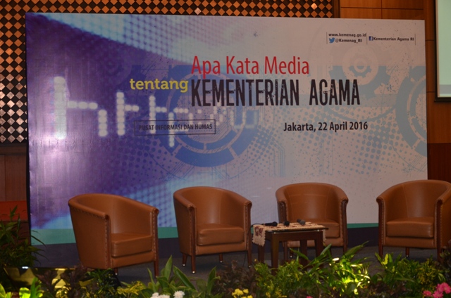 Jum’at, 22 April 2016 Sejak pertama kali memimpin Kementerian Agama pada Juni 2014 lalu, Menteri Agama Lukman Hakim Saifuddin meminta jajarannya agar Speak Up, menginformasikan program kerjanya kepada masyarakat. Hal ini penting, menurut Menteri Agama Lukman Hakim Saefuddin, selain karena keterbukaan informasi sudah menjadi keharusan dan sekaligus menjadi bagian akuntabilitas publik, sosialisasi program kerja juga bisa memberi ruang kepada masyarakat untuk memberikan kritik dan saran. Pada akhirnya Kementerian Agama melalui Kepala Bidang Humas Dr. H. Kurdi Subiyantoro, M. Pd dan Kepala Pusat Informasi dan Humas Rosidin, S. Si., MM melaksanakan kegiatan Seminar Hasil Monitoring dan Analisis Media Kementerian Agama RI dengan mengangkat tema ” Apa Kata Media Tentang Kementerian Agama”. Prof. Dr. H. Nur Syam, M. Si (Sekjen Kemenag RI), beliau sebagai Penanggung Jawab kegiatan seminar, menurut beliau kegiatan seminar kali ini merupakan refleksi program kerja Kementerian Agama periode Bulan Januari – Maret 2016, Seminar Hasil Monitoring dan Analisis Media Kementerian Agama RI menengetengahkan 2 (dua) materi pokok yaitu 1. Respon Hasil Analisis Media ( Menag RI sebagai Narasumber) dan 2. Menjadi Juru Bicara yang Baik (Staff Khusus Presiden Bidang Komunikasi).