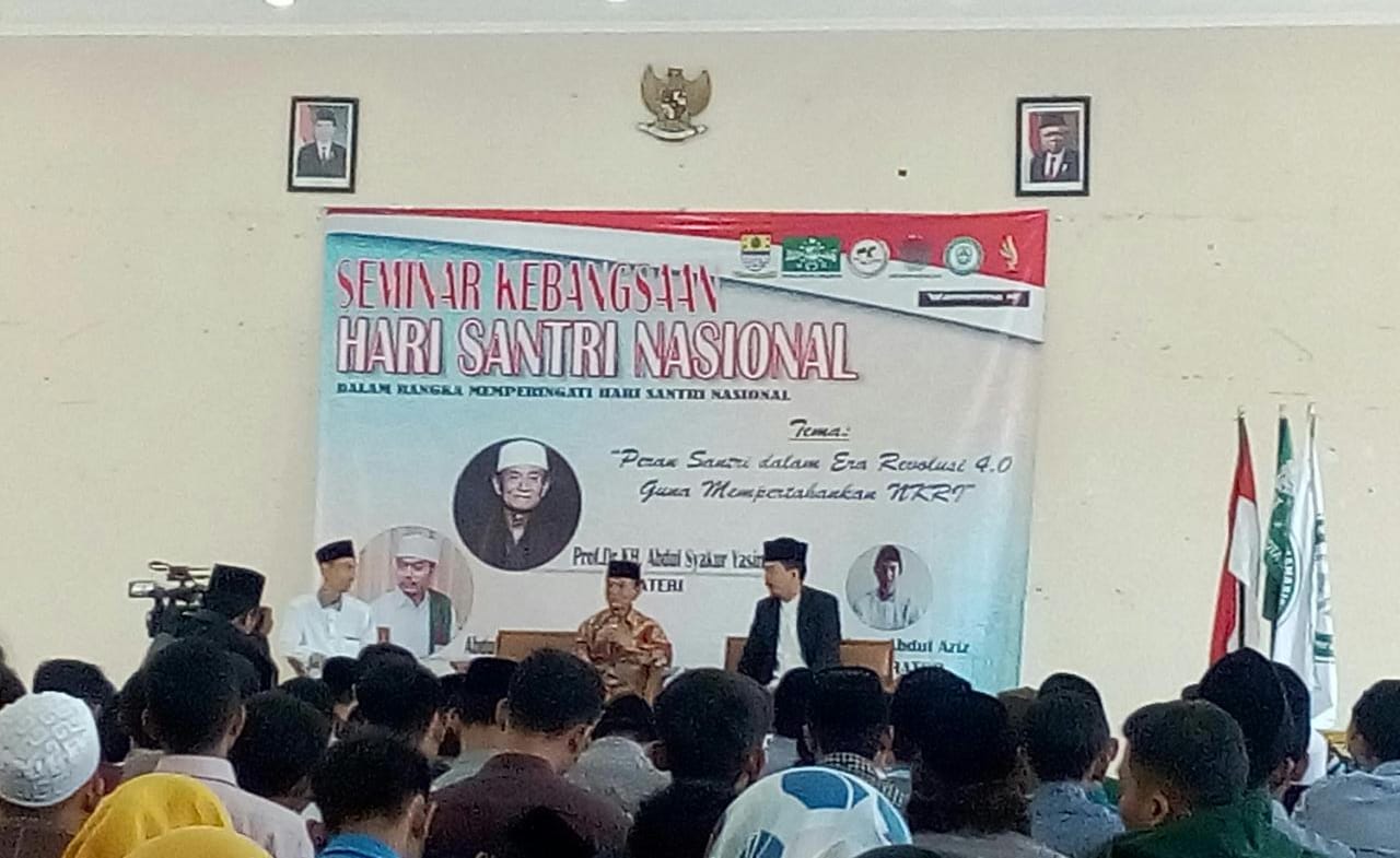 Dewan Eksekutif Mahasiswa (DEMA) Institut Agma Islam Negeri (IAIN) Syekh Nurjati Cirebon bekerjasama dengan PCNU Kota Cirebon menggelar seminar kebangsaan dalam rangka Hari Santri Nasional di aula Pascasarjana IAIN Cirebon. Seminar ini menghadirkan pemateri Prof. Dr. KH. Abdul Syakur Yasin, M.A dan Abdullah Syukri. Ratusan mahasiswa antusias mengikuti acara seminar kebangsaan tersebut. Senin (21/10/2019)