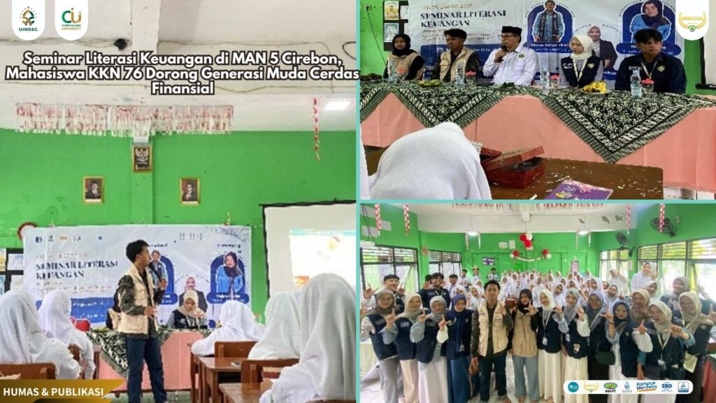 UIN Siber Cirebon — Mahasiswa KKN kelompok 76 UIN Siber Syekh Nurjati Cirebon menyelenggarakan Seminar Literasi Keuangan bertema “Cerdas Finansial, Sejahtera bersama: Membangun Masyarakat Melek Keuangan Sejak Dini” di MAN 5 Cirebon, Selasa (12/8/2025). Kegiatan ini dihadiri oleh siswa-siswi dan para guru MAN 5 Cirebon.