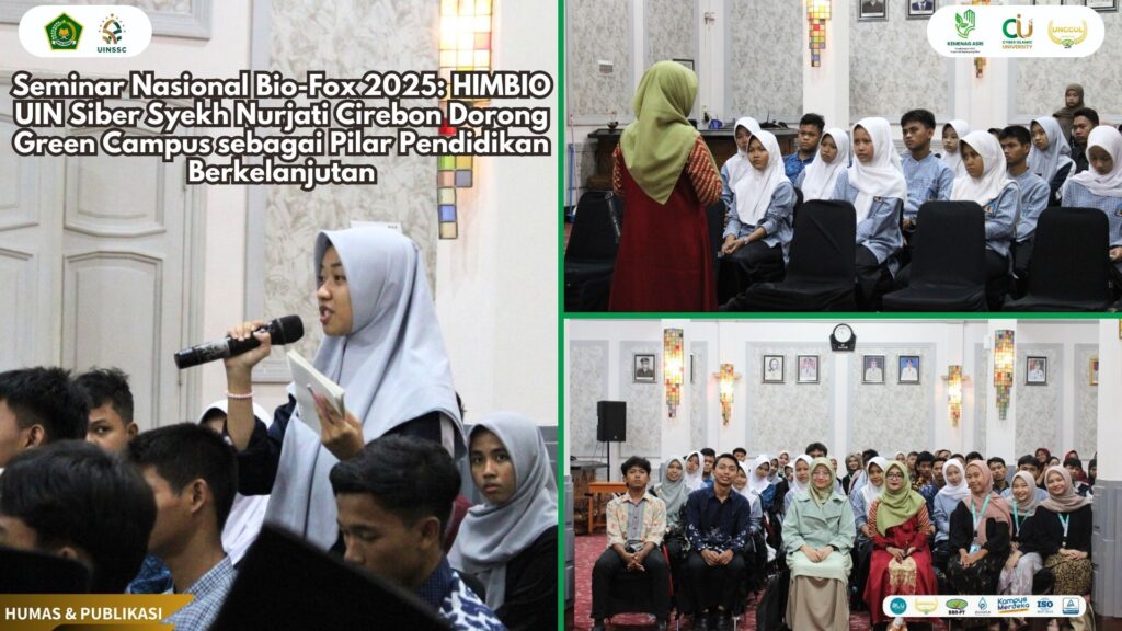 UIN Siber Cirebon – Departemen Pengabdian Kepada Masyarakat (PK) Himpunan Mahasiswa Biologi (HIMBIO) Fakultas Ilmu Tarbiyah dan Keguruan UIN Siber Syekh Nurjati Cirebon sukses menyelenggarakan Seminar Nasional Bio-Fox 2025 dengan tema “Green Campus Sebagai Pilar Pendidikan Berkelanjutan di Era Perubahan Iklim”. Acara yang digelar di lantai 1 Gedung Kantor Wali Kota Cirebon ini menjadi ruang kolaborasi strategis antara akademisi, mahasiswa, pemerintah daerah, dan masyarakat dalam memperkuat komitmen terhadap kelestarian lingkungan.(12/09).