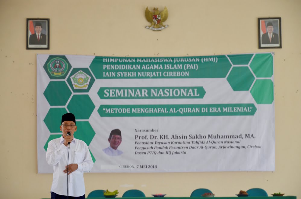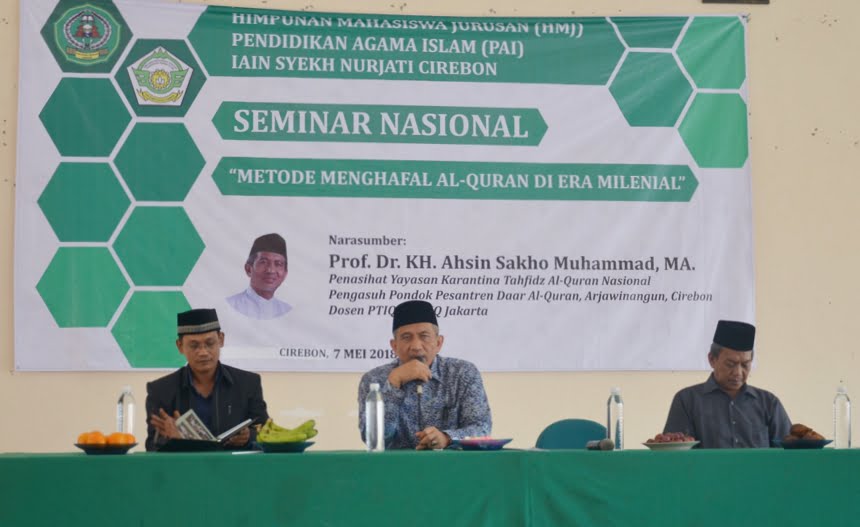 Himpunan Mahasiswa Jurusan (HMJ) Pendidikan Agama Islam (PAI) Fakultas Ilmu Tarbiyah dan Keguruan (F-ITK) IAIN Syekh Nurjati Cirebon menggelar Seminar Nasional dengan tema ” Metode Menghafal Al-Qur’an di Era Milenial” di gedung pascasarjana lt.3 (tiga). Senin, (07-05-18).