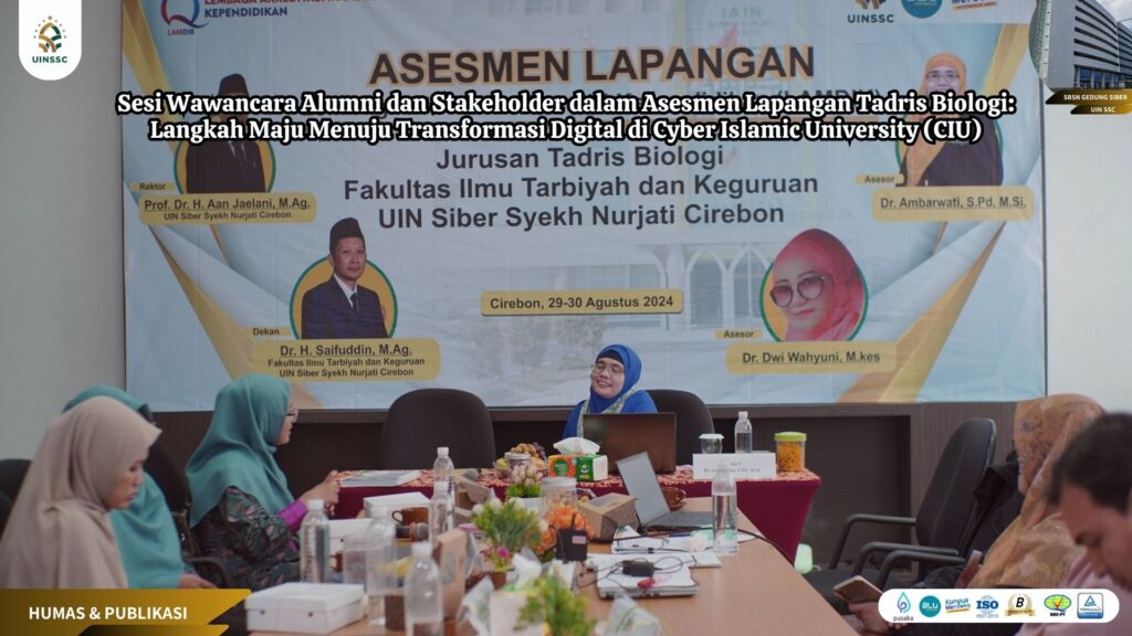 UIN Siber Cirebon – Dalam rangkaian kegiatan Asesmen Lapangan Akreditasi Jurusan Tadris Biologi Fakultas Ilmu Tarbiyah dan Keguruan (FITK) Universitas Islam Negeri (UIN) Siber Syekh Nurjati Cirebon, sesi wawancara dengan alumni dan stakeholder berlangsung dengan format hybrid. Sesi ini diadakan secara offline di ruang penilaian dan online melalui platform Zoom Meeting, mencerminkan kesiapan Jurusan Tadris Biologi dalam mendukung transformasi kelembagaan menuju Cyber Islamic University (CIU). Jum’at, (31/08/2024).
