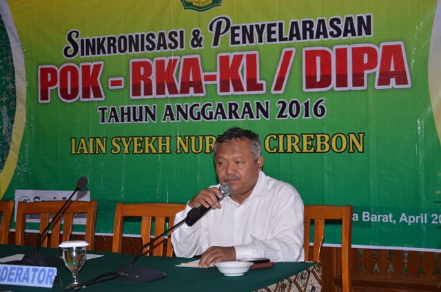 CIATER, IAIN Syekh Nurjati Cirebon pada tanggal 7 s.d 8 April 2016 melaksanakan kegiatan Sinkoronisasi dan Penyelarasan POK RKA-KL/ DIPA Tahun Anggaran 2016 yang bertempat di SariAter Hotel & Resort, Subang Jawa Barat. Kegiatan ini dihadiri oleh 75 orang peserta yang terdiri dari unsur Rektorat, Fakultas, Dekanat, PPK, Staff PPK, Kepala-kepala Pusat, Kabag, Kasubbag, Perencanaan, Keuangan serta Tim ULP di Lingkungan IAIN Syekh Nurjati Cirebon. Dr. Hilmi Muhammadiyah sebagai salah satu Narasumber dalam acara Sinkronisasi dan Penyelarasan POK RKA-KL/ DIPA Tahun Anggaran 2016.