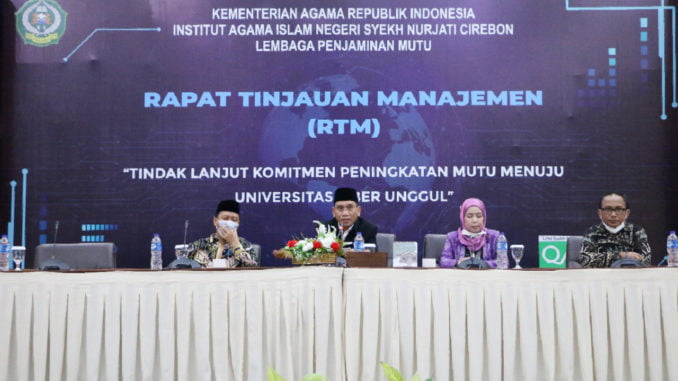 CIREBON – Hasil Audit Mutu Internal (AMI) yang dilakukan Lembaga Penjaminan Mutu (LPM) Institut Agama Islam Negeri (IAIN) Syekh Nurjati Cirebon di lingkungan kampus setempat ditindaklanjuti dengan penyelenggaraan Rapat Tinjauan Manajemen (RTM), Selasa (16/11/2021).