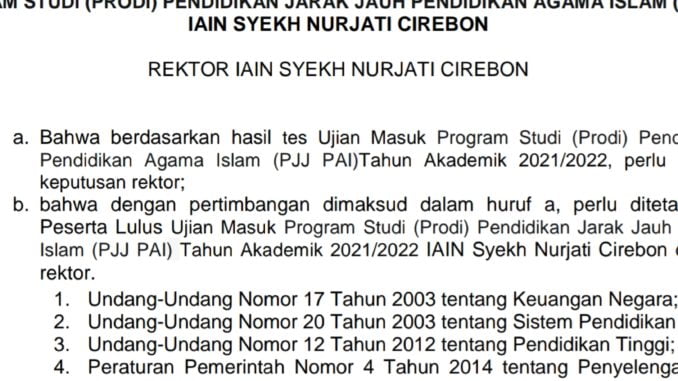 SK Kelulusan UPJJ PAI IAIN Cirebon Tahun 2021 30 Oktober 2021 arifin Berita, Informasi 0 Download Pengumuman dibawan: SK KELULUSAN UPJJ PAI 2021 2022 TERBARU PaipjjUppjpai