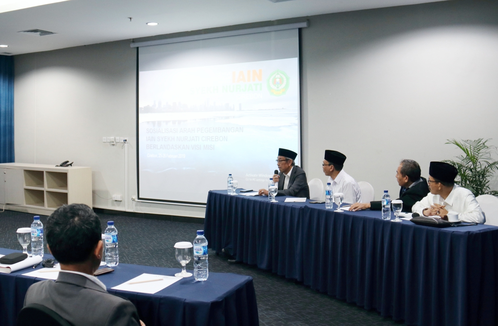 Panitia Seleksi (Pansel) Calon Wakil Rektor, Dekan, Direktur Pasca Sarjana, serta beberapa lembaga di IAIN Syekh Nurjati Cirebon menggelar kegiatan dengan tema Sosialisasi Arah Pengembangan IAIN Syekh Nurjati Cirebon Berlandaskan Visi dan Misi di Hotel Aston Cirebon. Sebanyak 32 orang di lingkungan Institut Agama Islam Negeri (IAIN) Syekh Nurjati Cirebon mengikuti seleksi untuk calon Wakil Rektor, Dekan, Direktur Pasca Sarjana, serta beberapa lembaga di IAIN Syekh Nurjati Cirebon. Nantinya, 32 orang ini akan menempati jabatan yang nantinya akan diganti sesuai Statuta IAIN Syekh Nurjati Cirebon. Ke-32 orang ini secara bergantian mengikuti seleksi dan menyampaikan visi misi di salah satu hotel di Kabupaten Cirebon, dengan panelis mantan Sekjen Kementerian Agama RI, H Nur Syam. (Senin, 25/02).