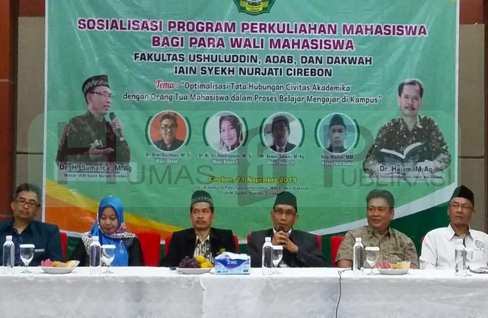 Fakultas Ushuluddin, Adab dan Dakwah (FUAD) Institut Agama Islam Negeri (IAIN) Syekh Nurjati Cirebon menyelenggarakan acara sosialisasi program perkuliahan bagi para wali mahasiswa dengan tema “Optimalisasi Tata Hubungan Civitas Akademika dengan Orang Tua Mahasiswa dalam Proses Belajar Mengajar di Kampus”, yang diselenggarakan di lantai 4 gedung FUAD. Kegiatan tersebut dihadiri Dr. H. Sumanta Hasyim, M.Ag (Rektor), Dr. H. Hajam, M.Ag (Dekan FUAD) didampingi segenap pejabat struktural, non struktural dan tamu undangan. Kamis (21/11)