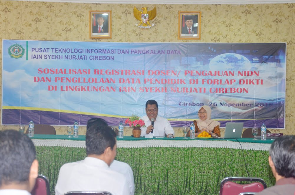 Pusat Teknologi Informasi dan Pangkalan Data (PTIPD) IAIN Syekh Nurjati Cirebon menggelar Sosialisasi Registrasi Dosen/Pengajuan NIDN dan Data Pendidik di Forlap DIKTI di Lingkungan IAIN Syekh Nurjati Cirebon. Kegiatan dihadiri Dr. H. Farihin, M.Pd(Warek III) sekaligus membuka kegiatan tersebut. Peserta Kegiatan terdiri dari perwakilan Fakultas di Lingkungan IAIN Syekh Nurjati Cirebon. Kegiatan tersebut bertujuan untuk mensosialisasikan Registrasi Dosen/Pengajuan NIDN dan Data Pendidik di Forlap DIKTI di Lingkungan IAIN SYekh Nurjati Cirebon. Sebagai penanggung jawab dan ketua pelaksana kegiatan H. Darwan, M.Kom. (Ketua UPT PTIPD).