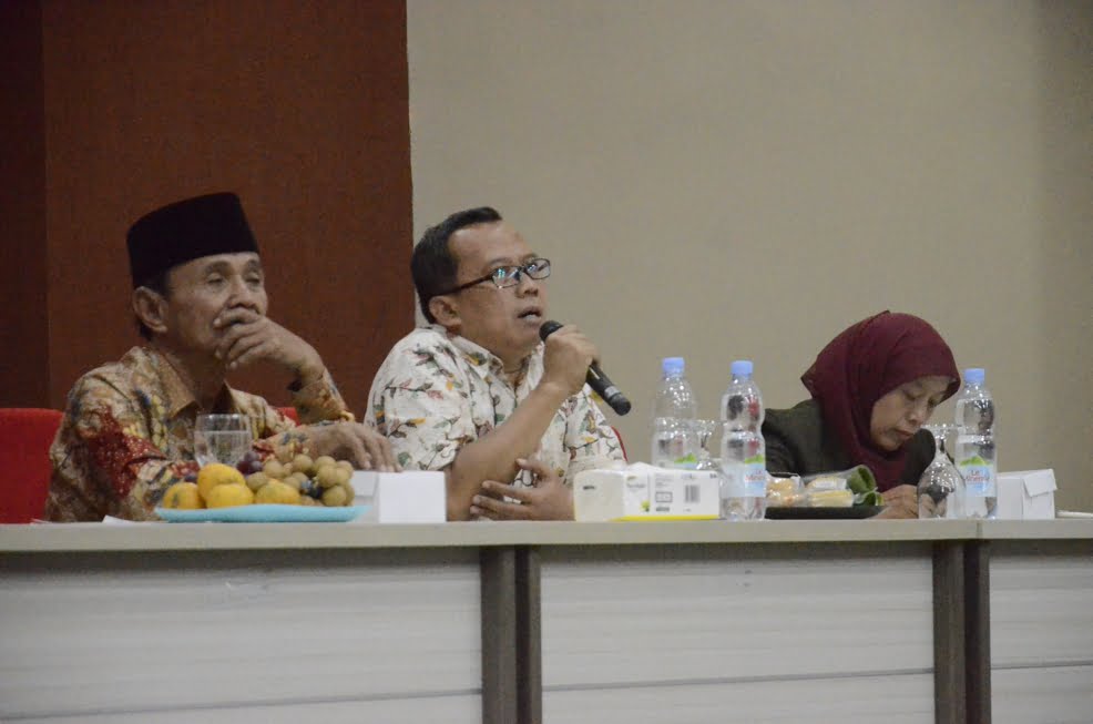 Masri’ah, M.Ag sebagai moderator memanfaatkan waktu kegiatan untuk saling tukar pengalaman antara peserta kegiatan dengan alumni pada kegiatan STADIUM GENERAL dengan tema “Bahasa Arab dan Peranannya dalam Peradaban Dunia” .