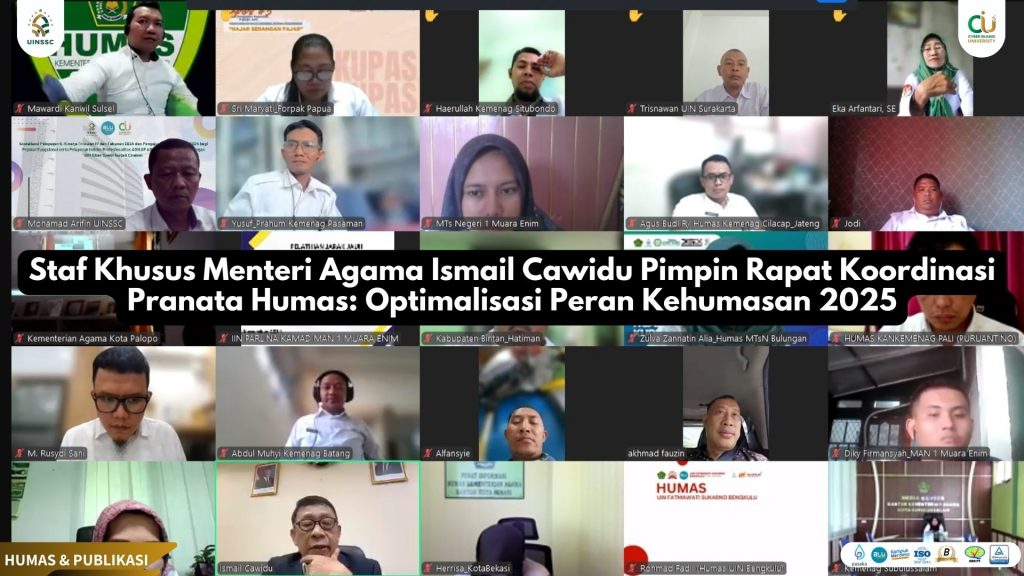UIN Siber Cirebon – Dalam rangka memperkuat dan mengoptimalkan peran kehumasan di lingkungan Kementerian Agama RI, Biro Humas dan Komunikasi Publik menggelar Rapat Koordinasi secara daring, Selasa (14/01). Agenda strategis ini dilaksanakan berdasarkan Surat Edaran Sekjen nomor B-5/B.VIII.3/HM.01/01/2025 dan mengundang seluruh pranata humas di bawah Kementerian Agama dari berbagai wilayah Indonesia.