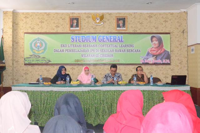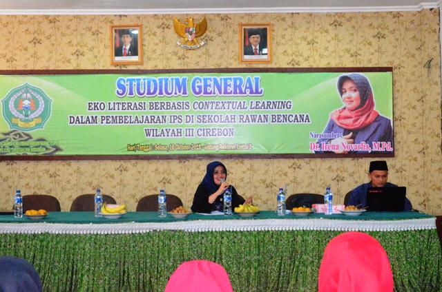 Jurusan Tadris Ilmu Pengetahuan Sosial (T-IPS) Fakultas Ilmu Tarbiyah dan Keguruan (F-ITK) IAIN Syekh Nurjati Cirebon menggelar kegiatan Studium General dengan Tema “Eko Literasi Berbasis Contextual Learning dalam Pembelajaran IPS di Sekolah Rawan Bencana Wilayah III Cirebon” di Gedung Rektorat lantai 3. Kegiatan tersebut dihadiri 100 peserta yang terdiri dari perwakilan mahasiswa T-IPS, masing-masing kelas mendelegasikan 10 anggotanya. Selasa(16/10).