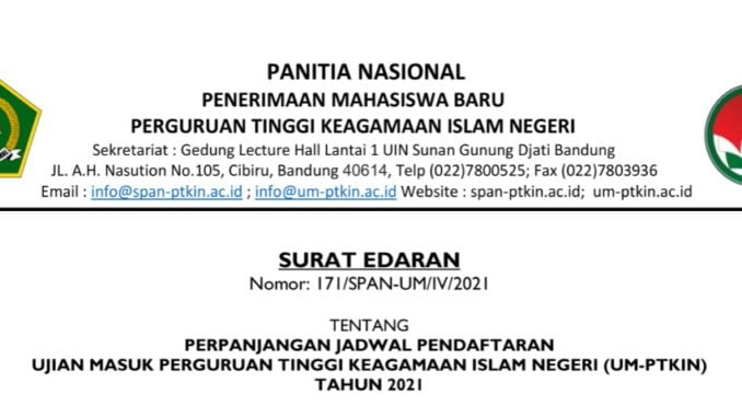 Surat Edaran Perpanjangan Jadwal Pendaftaran UM-PTKIN 2021 22 April 2021 arifin Berita, Pengumuman, Uncategorized 0 Download File Dibawah : Edaran perpanjangan daftar UM PTKIN birohdikemenagriDiktikemendikbuddiktiskemenagriHumas dan Publikasiiain cirebonIAIN Syekh Nurjati Cirebonitjenkemenag.go.idkanwiljabarkemenagkemahassiswaankemenagrikemeninfopendiskemenagriuin cirebonuinsyekhnurjaticirebonUISSIcirebonUISSIsyekhnurjaticirebonum ptkin 2021