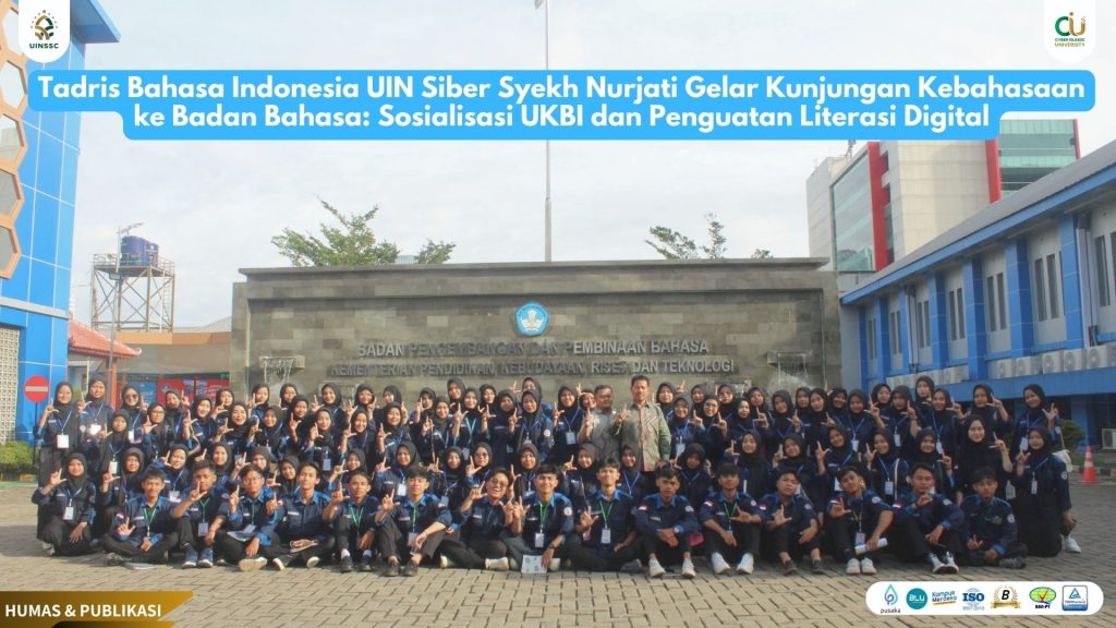 UIN Siber Cirebon (Jakarta) – Jurusan Tadris Bahasa Indonesia Fakultas Ilmu Tarbiyah dan Keguruan (FITK) UIN Siber Syekh Nurjati Cirebon, yang dikenal sebagai Cyber Islamic University (CIU), menggelar program Kunjungan Kebahasaan bertema “Sosialisasi Uji Kemahiran Berbahasa Indonesia (UKBI) dan Penguatan Adab Literasi Digital dalam Era Siber.” Acara ini berlangsung di Gedung M. Tabrani, Aula Badan Pengembangan dan Pembinaan Bahasa, Jakarta, dengan dihadiri lebih dari 130 mahasiswa semester 1 dan 3, dosen, staf, serta narasumber ahli dari Badan Bahasa. Rabu, (11/12/2024).