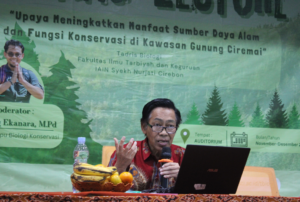 IAIN Cirebon – IAIN Syekh Nurjati Cirebon menyelenggarakan program Visiting Lecture yang menampilkan tema utama “Upaya Meningkatkan Manfaat Sumber Daya Alam dan Fungsi Konservasi di Kawasan Gunung Ciremai.” Acara ini dibawakan oleh Prof. Dr. H. M. Subandi, seorang guru besar dari Universitas Islam Negeri Bandung yang berpengalaman dalam bidangnya. Bertempat di Ruang Auditorium FITK Lt. 5, kuliah umum ini dihadiri oleh pemangku jabatan, dosen, dan lebih dari seratus mahasiswa Tadris Biologi. Sabtu, (02/12/2023).