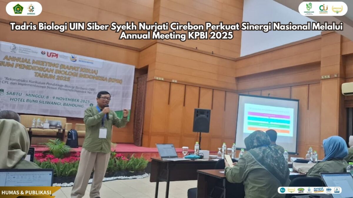 UIN Siber Cirebon (Bandung) — Dalam upaya memperkuat sinergi dan keselarasan pengembangan kurikulum pendidikan biologi di tingkat nasional, Program Studi Tadris Biologi UIN Siber Syekh Nurjati Cirebon berpartisipasi aktif dalam Annual Meeting Konsorsium Pendidikan Biologi Indonesia (KPBI) Tahun 2025. Kegiatan yang berlangsung di Hotel Bumi Siliwangi, Universitas Pendidikan Indonesia (UPI) Bandung ini mengusung tema “Rumusan Kurikulum Pendidikan Biologi Berdasarkan OBE dan KPT”.(08/11).