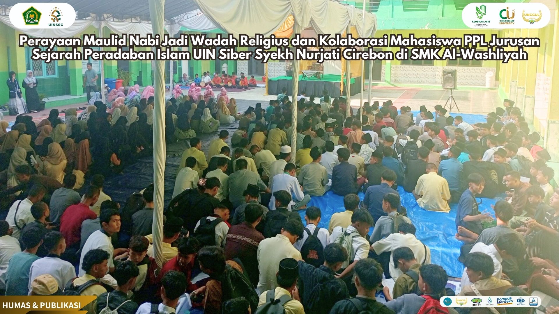 12 September 2025 • Perayaan Maulid Nabi Jadi Wadah Religius dan Kolaborasi Mahasiswa PPL Jurusan Sejarah Peradaban Islam UIN Siber Syekh Nurjati Cirebon di SMK Al-Washliyah UIN Siber Cirebon – Suasana penuh khidmat dan kebersamaan mewarnai lapangan SMP dan SMK Al-Washliyah,... Berita Kegiatan