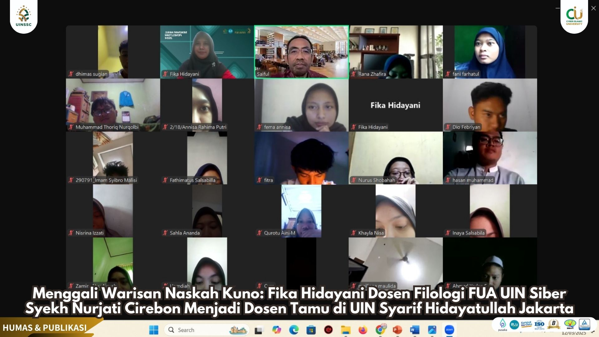 12 March 2025 • Menggali Warisan Naskah Kuno: Fika Hidayani Dosen Filologi FUA UIN Siber Syekh Nurjati Cirebon Menjadi Dosen Tamu di UIN Syarif Hidayatullah Jakarta UIN Siber Cirebon – Jurusan Sejarah Peradaban Islam, Fakultas Adab dan Humaniora, Universitas Islam Negeri... Berita Kegiatan