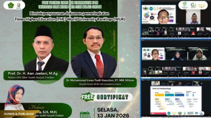 13 January 2026 • 18 Views • LPPM UIN Siber Syekh Nurjati Cirebon Gelar Bimtek Penyusunan Dokumen Pemeringkatan THE dan WUR Berita Inovasi Kegiatan Pojok Rektor