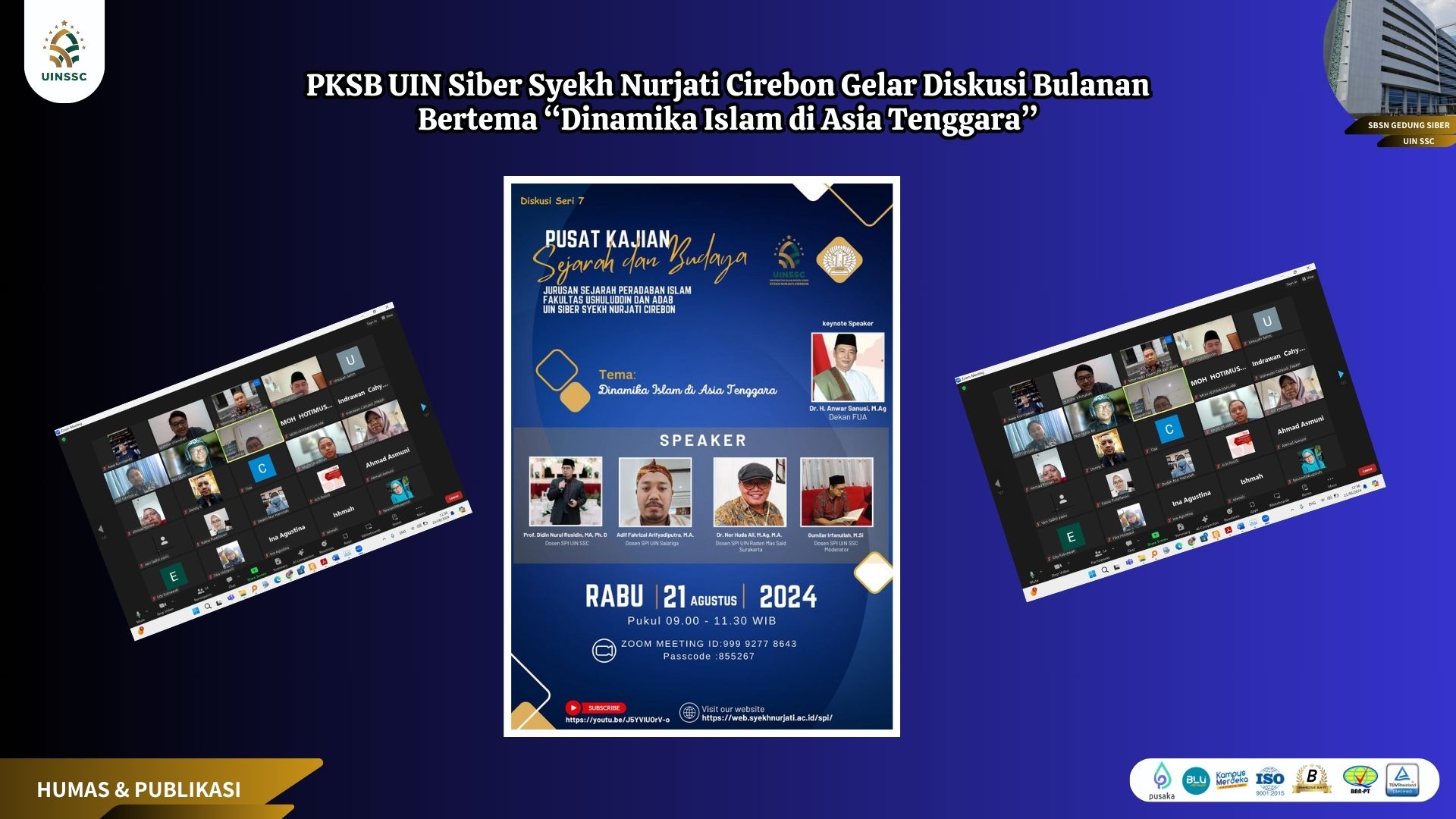 21 August 2024 • PKSB UIN Siber Syekh Nurjati Cirebon Gelar Diskusi Bulanan Bertema “Dinamika Islam di Asia Tenggara” UIN Siber Cirebon – Pusat Kajian Sejarah dan Budaya (PKSB) Jurusan Sejarah Peradaban Islam UIN... Berita