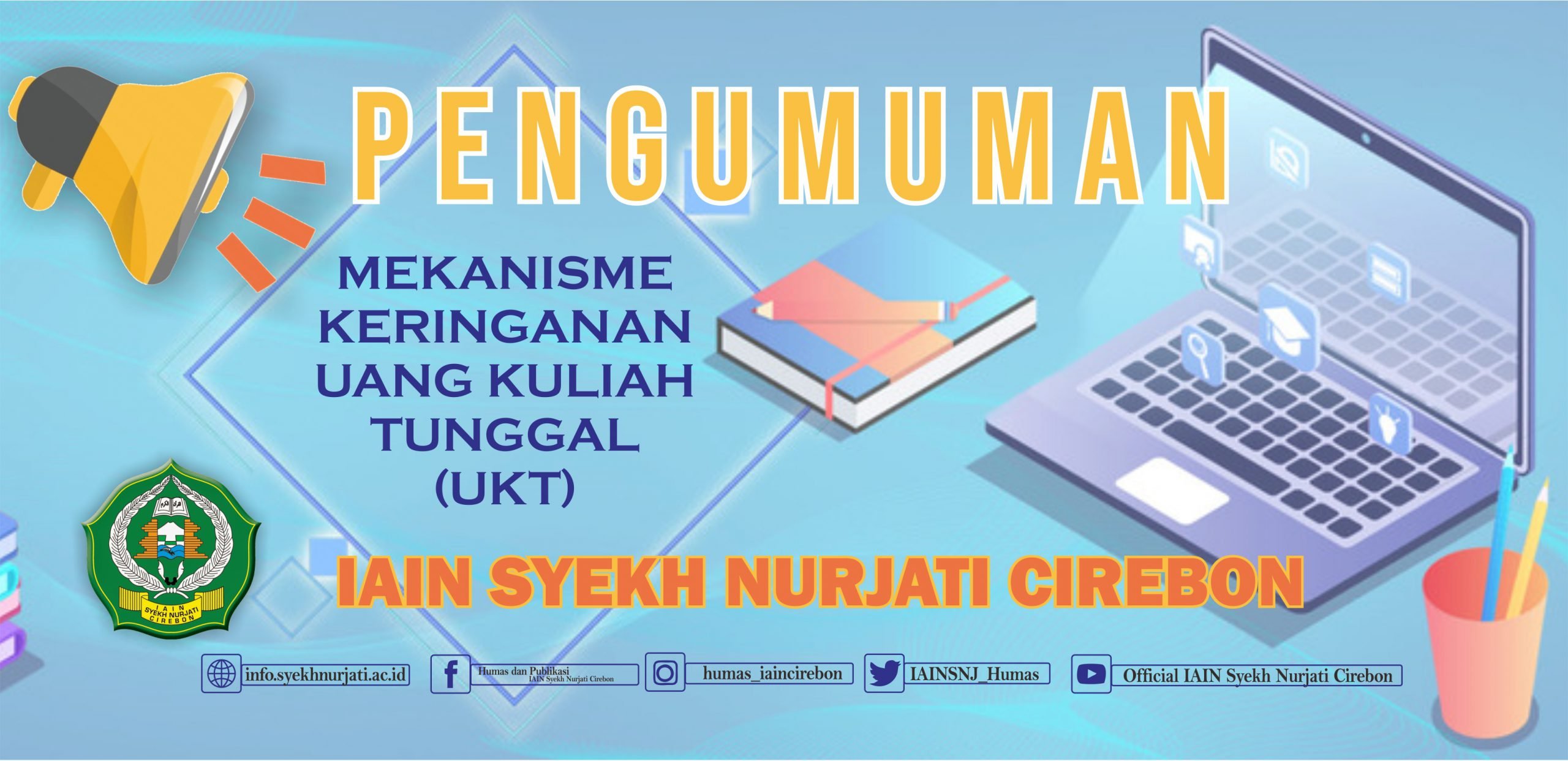 PENGUMUMAN Berdasarkan Keputusan Rektor IAIN Syekh Nurjati Cirebon nomor : 0302/In.08/R/PP.04/01/2021 tentang Mekanisme Keringanan Uang Kuliah Tunggal (UKT) Semester Genap Tahun Akademik 2020/2021 dan Semester Ganjil Tahun Akademik 2021/2022, dengan ini kami mengumumkan bahwa seluruh mahasiswa aktif jenjang Stara-1 (S-1) semester 2 s.d. semester 14 dapat mengajukan keringanan UKT mulai tanggal 20 Januari s.d. 4 … Baca Selengkapnya