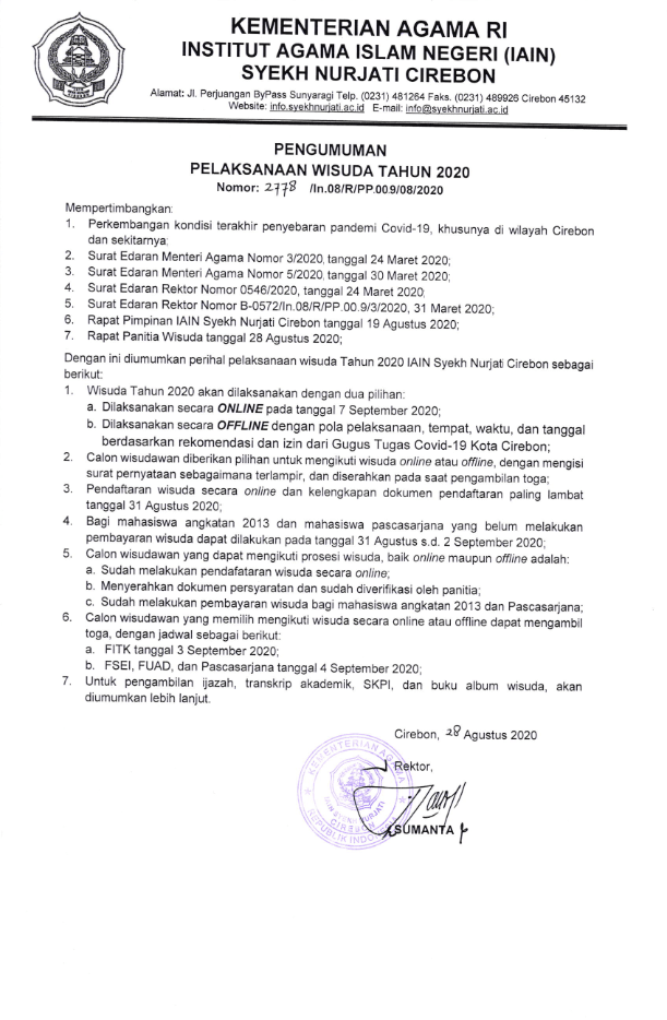 PENGUMUMAN PENDAFTARAN BEASISWA PENINGKATAN PRESTASI AKDEMIK Dengan ini diumumkan Beasiswa Peningkatan Prestasi Akademik Mahasiswa Strata Satu (S-1) untuk 26 mahasiswa, dengan ketentuan sebagai berikut: PERSYARATAN UMUM Mahasiswa Aktif IAIN Syekh Nurjati Cirebon pada semester III s/d VII. Memiliki Prestasi Akademik selama menjadi mahasiswa dengan Indeks Prestasi Komulatif minimal 3.30. Mahasiswa tidak termasuk dalam kelompok UKT … Baca Selengkapnya