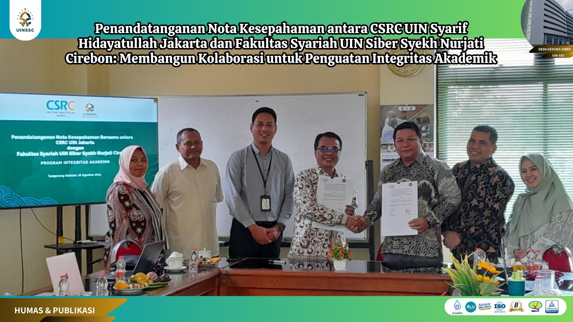 16 August 2024 • Penandatanganan Nota Kesepahaman antara CSRC UIN Syarif Hidayatullah Jakarta dan Fakultas Syariah UIN Siber Syekh Nurjati Cirebon: Membangun Kolaborasi untuk Penguatan Integritas Akademik UIN Siber Cirebon – Sebuah langkah strategis dalam pengembangan Tri Dharma Perguruan Tinggi diambil pada... Berita Kegiatan