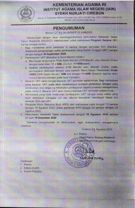 11 August 2020 • Pelaksanaan UM-Mandiri IAIN Cirebon Dijalankan Secara Offline dengan sistem CBT Pelaksanaan Ujian Mandiri yang digelar di Kampus IAIN Syekh Nurjati Cirebon, Selasa, (11/8/2020) dijalankan dengan... Berita