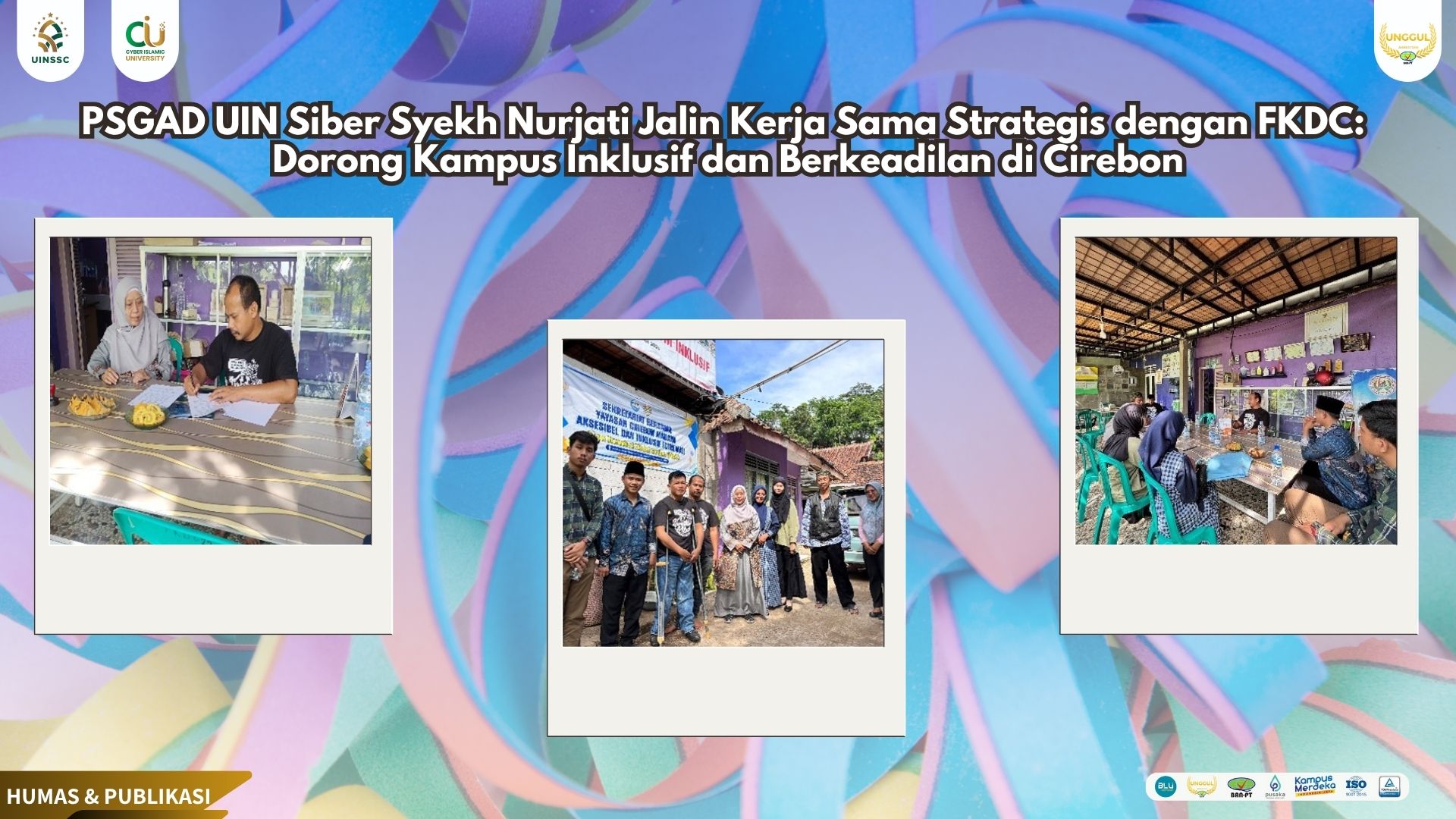 27 June 2025 • PSGAD UIN Siber Syekh Nurjati Jalin Kerja Sama Strategis dengan FKDC: Dorong Kampus Inklusif dan Berkeadilan di Cirebon UIN Siber Cirebon – Komitmen terhadap kesetaraan dan keberagaman kembali ditegaskan oleh Pusat Studi Gender... Berita Kegiatan