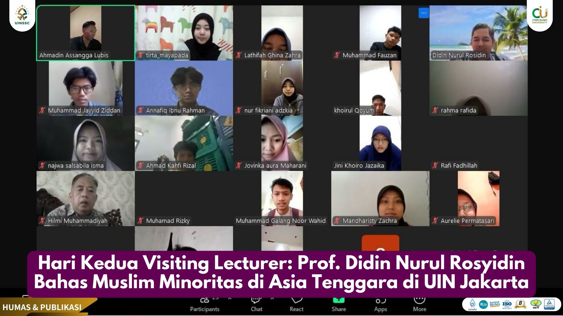 11 March 2025 • Hari Kedua Visiting Lecturer: Prof. Didin Nurul Rosyidin Bahas Muslim Minoritas di Asia Tenggara di UIN Jakarta UIN Siber Cirebon – Pada hari kedua Selasa, 11 Maret 2025 pelaksanaan kegiatan Visiting Lecturer,... Berita Kegiatan
