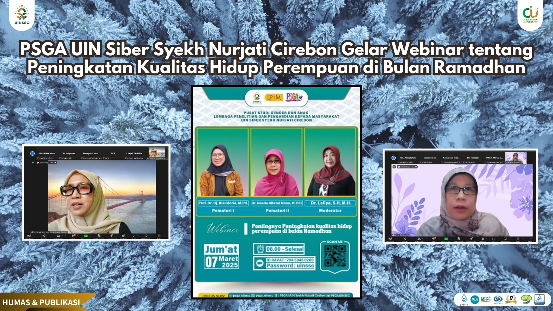 7 March 2025 • PSGA UIN Siber Syekh Nurjati Cirebon Gelar Webinar tentang Peningkatan Kualitas Hidup Perempuan di Bulan Ramadhan UIN Siber Cirebon – Pusat Studi Gender dan Anak (PSGA) Lembaga Penelitian dan Pengabdian kepada... Berita Kegiatan