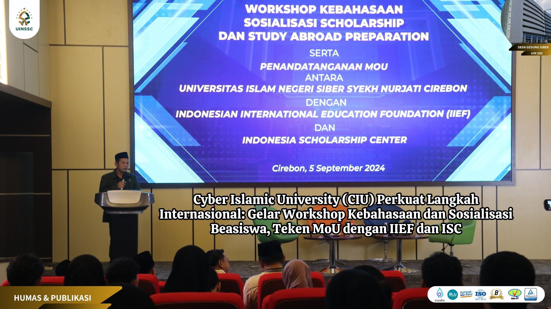 5 September 2024 • Cyber Islamic University (CIU) Perkuat Langkah Internasional: Gelar Workshop Kebahasaan dan Sosialisasi Beasiswa, Teken MoU dengan IIEF dan ISC UIN Siber Cirebon – Dalam rangka mendukung pengembangan akademik dan internasionalisasi mahasiswa, UIN Siber Syekh... Berita Kegiatan Pojok Rektor