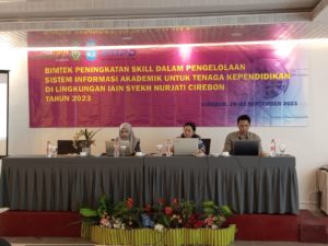 Rabu, 20 September 2023 Pusat Teknologi Informasi dan Pangkalan Data (PTIPD) IAIN Syekh Nurjati Cirebon, menggelar kegiatan bimtek dengan tema “Peningkatan Skill dalam Pengelolaan Sistem Informasi Akademik untuk Tenaga Kependidikan di Lingkungan IAIN Syekh Nurjati Cirebon”. Kegiatan bimtek diikuti 50 tenaga kependidikan dan dilaksanakan selama tiga hari 20-22 September 2023 di Grand Tryas Hotel Kota Cirebon. Narasumber bimtek kali ini menghadirkan Rosalia Erminia Nugrahani, Luthfi Placenta Putri dan Dimas Bayu Febriyanto yang merupakan Tim SAS dari PT. Solusi Kampus Indonesia.
